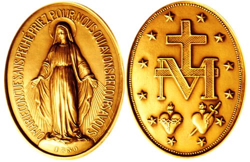 En 1830 la Santísima Virgen se apareció a una humilde novicia de la Caridad, Sor Catalina Labouré, ordenándole que se hiciese acuñar una medalla cuyas efigies le mostró. Una de las caras de la medalla lleva la imagen de la Inmaculada despidiendo rayos de sus manos, con esta plegaria: "Oh María concebida sin pecado, rogad por nosotros que recurrimos a vos". Santa Catalina Labouret Las curaciones y milagros de todo orden obrados por esta medalla aceleraron la definición dogmática de la Inmaculada Concepción, razón por la cual es la Medalla Milagrosa la más usada por las Hijas de María de todo el mundo y propiamente la insignia oficial de las mismas. He aquí cómo relata la propia sor Catalina su primera aparición: "Vino después de la fiesta de San Vicente, en la que nuestra buena madre Marta hizo, por la víspera, una instrucción referente a la devoción de los santos, en particular de la Santísima Virgen, lo que me produjo un deseo tal de ver a esta Señora, que me acosté con el pensamiento de que aquella misma noche vería a tan buena Madre. ¡Hacía tiempo que deseaba verla! Al fin me quedé dormida. Como se nos había distribuido un pedazo de lienzo de un roquete de San Vicente, yo había cortado el mío por la mitad y tragado una parte, quedándome así dormida con la idea de que San Vicente me obtendría la gracia de ver a la Santísima Virgen. Por fin, a las once y media de la noche, oí que me llamaban por mi nombre: Hermana, hermana, hermana. Despertándome, miré del lado que había oído la voz, que era hacia el pasillo. Corro la cortina y veo un niño vestido de blanco, de edad de cuatro a cinco años, que me dice: Venid a la capilla; la Santísima Virgen os espera.Inmediatamente me vino al pensamiento: ¡Pero se me va a oír! El niño me respondió: Tranquilizaos, son las once y media; todo el mundo está profundamente dormido, venid, yo os aguardo. Me apresuré a vestirme y me dirigí hacia el niño, que había permanecido de pie, sin alejarse de la cabecera de mi lecho. Puesto siempre a mi izquierda, me siguió, o más bien, yo le seguí a él en todos sus pasos. Las luces de todos los lugares por donde pasábamos estaban encendidas, lo que me llenaba de admiración. Creció de punto el asombro cuando, al ir a entrar en la capilla, se abrió la puerta apenas la hubo tocado el niño con la punta del dedo; y fue todavía mucho mayor cuando vi todas las velas y candeleros encendidos, lo que me traía a la memoria la misa de Navidad. No veía, sin embargo, a la Santísima Virgen. El niño me condujo al presbiterio, al lado del sillón del señor director. Aquí me puse de rodillas, y el niño permaneció de pie todo el tiempo. Como éste se me hiciera largo, miré no fuesen a pasar por la tribuna las hermanas a quienes tocaba vela. Al fin llegó la hora. El niño me lo previene y me dice: He aquí a la Santísima Virgen; hela aquí. Yo oí como un ruido, como el roce de un vestido de seda, procedente del lado de la tribuna, junto al cuadro de San José, que venía a colocarse en las gradas del altar, al lado del Evangelio, en un sillón parecido al de Santa Ana; sólo que el rostro de la Santísima Virgen no era como el de aquella Santa. Dudaba yo si sería la Santísima Virgen, pero el ángel que estaba allí me dijo: He ahí a 1a Santísima Virgen. Me sería imposible decir lo que sentí en aquel momento, lo que pasó dentro de mí; parecíame que no la veía. Entonces el niño habló, no como niño, sino como hombre, con la mayor energía y con palabras las más enérgicas también. Mirando entonces a la Santísima Virgen, me puse de un salto junto a Ella, de rodillas sobre las gradas del altar y las manos apoyadas sobre las rodillas de esta Señora... "En ese instante experimenté la emoción más dulce de mi vida y que me es absolutamente imposible describir, La Santísima Virgen me explicó la manera como debía haberme en medio de mis penas y, señalándome con la mano izquierda las gradas del altar, me dijo que viniera siempre, en semejantes ocasiones, a postrarme allí, y abrir allí mi corazón para desahogar lo y recibir todos los consuelos de que tenía necesidad. Y agregó: Hija mía, quiero confiarte una misión. Tendrás grandes amarguras para llevarlas a cabo, pero las sobrellevarás con el pensamiento de que todo irá encaminado a la mayor gloria de Dios. Padecerás contradicción, pero no temas porque no te faltará la gracia que necesitas; y no dejes de manifestar ingenua y sen cillamente todo lo que pase. Has de ver algunas cosas, y has de recibir particulares inspiraciones en la oración. Pero, mira, da cuenta dé todo a tu padre espiritual. "Entonces supliqué a la Santísima Virgen que me explicara las cosas que había visto, Hija mía -me respondió-, los tiempos que corren son malos y van a traer grandes calamidades sobre Francia. El trono va a ser echado por tierra. El mundo entero será azotado por toda suerte de males. La Santísima Virgen mostraba un aire tristísimo diciendo esto: Pero, mira, en aquellos tiempos de tribulación, venid, venid al pie de este santo altar. Aquí, mis gracias serán derramadas sobre todos. ..todas las personas que las pidieren, grandes y pequeñas. Llegarán a tal extremo las cosas que parecerá que ya no habrá remedio; todo se creerá perdido; pero tened buen ánimo, no desconfiéis un momento; yo estaré con vosotros; experimentaréis sensiblemente mi presencia, y la protección de Dios y de San Vicente descenderá sobre sus dos Familias. (La de los Sacerdotes de la Misión y la de las Hijas de la Caridad). Después, los ojos arrasados en lágrimas, añadió: En otras comunidades igual que en el clero de París, habrá víctimas. El Ilustrísimo Señor Arzobispo morirá. Al proferir estas palabras, sus lágrimas rodaron, Hija mía, la Cruz será vilipendiada y arrojada al suelo. Será abierto de nuevo el costado de mi Divino Hijo. Las calles se inundarán de sangre; el mundo entero que dará sumido 