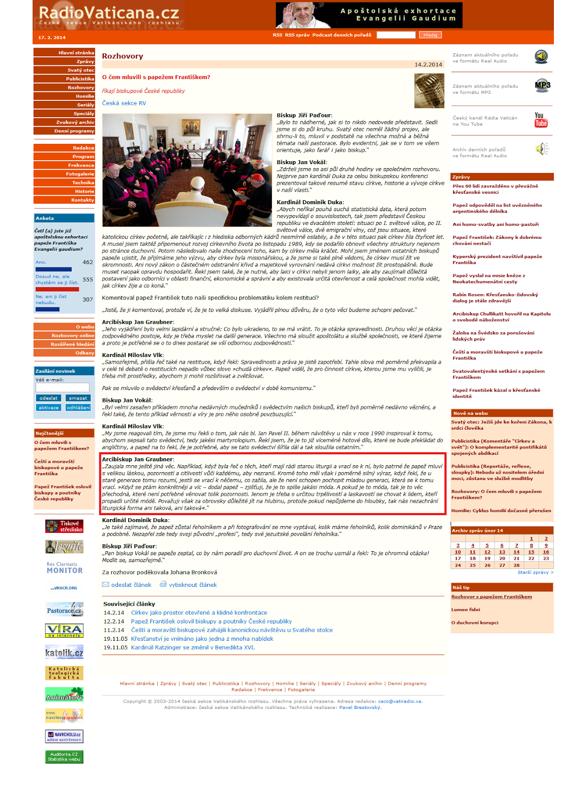 Captura de la página de Radio Vaticana (edición en lengua checa). En cuadro rojo, el relato de Gaubner